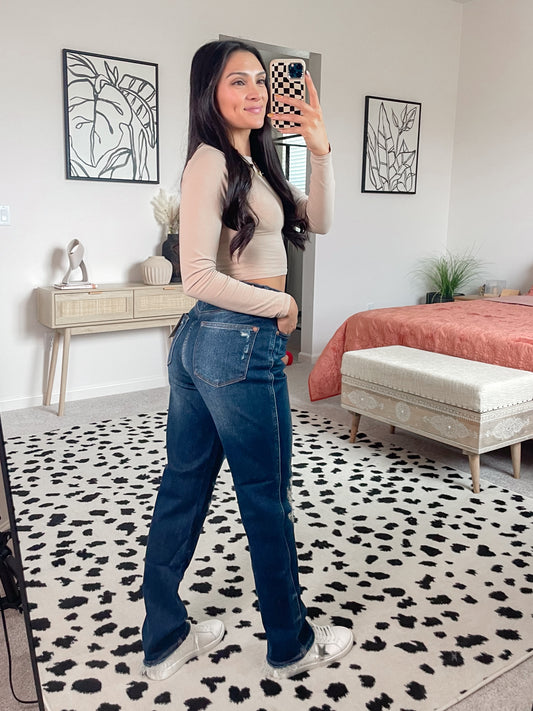 Judy Blue Rigid Magic Heavy Destroy Straight Jeans