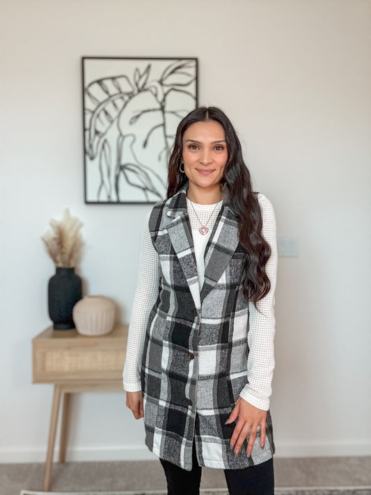 Honey Plaid Long Vest