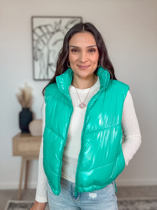 Teal Shiny Quilted Vest
