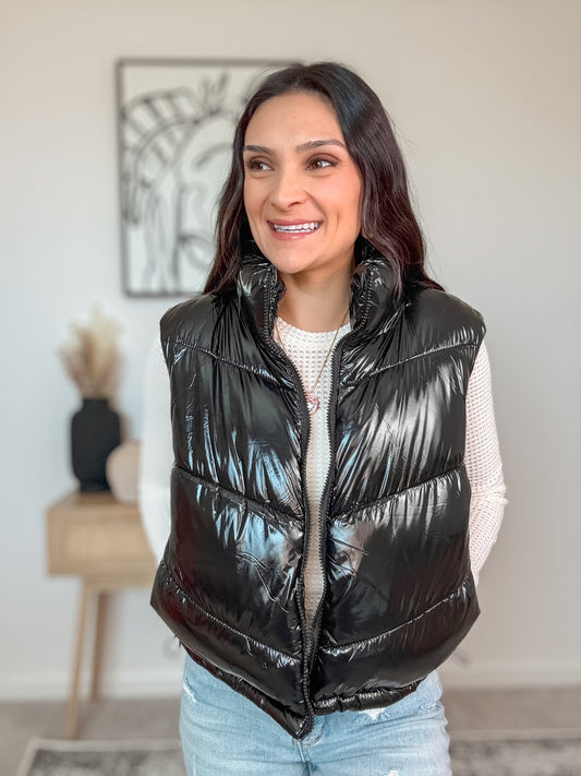 Black Shiny Quilted Vest